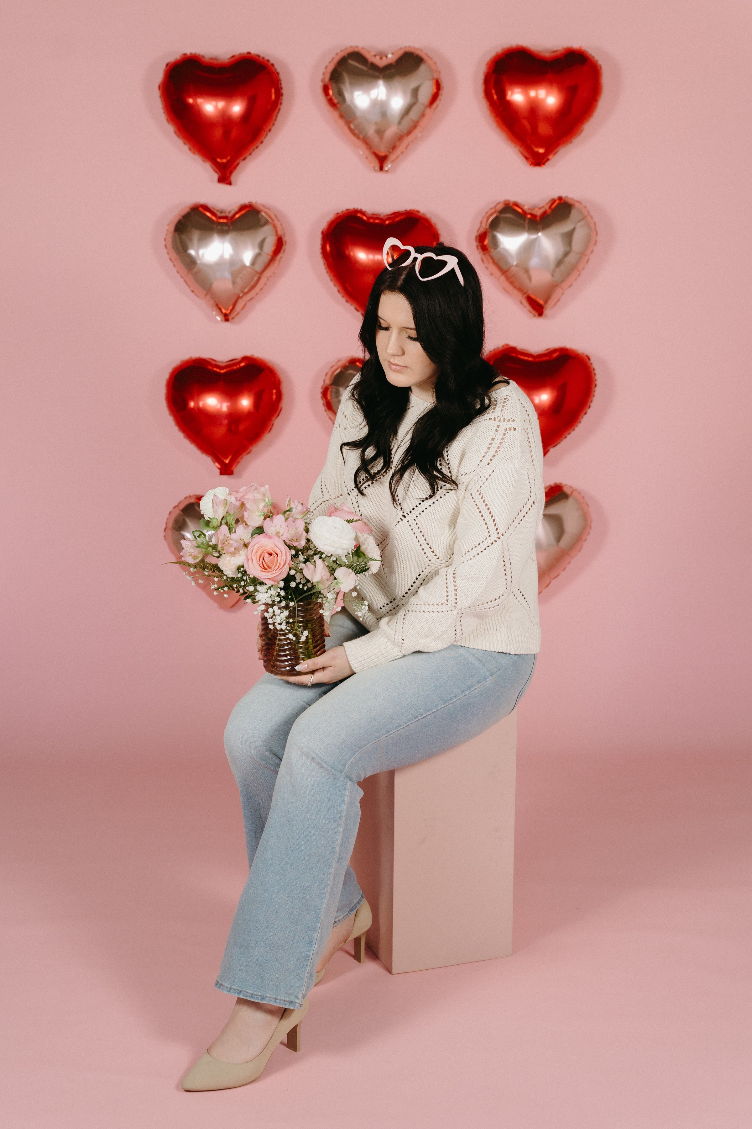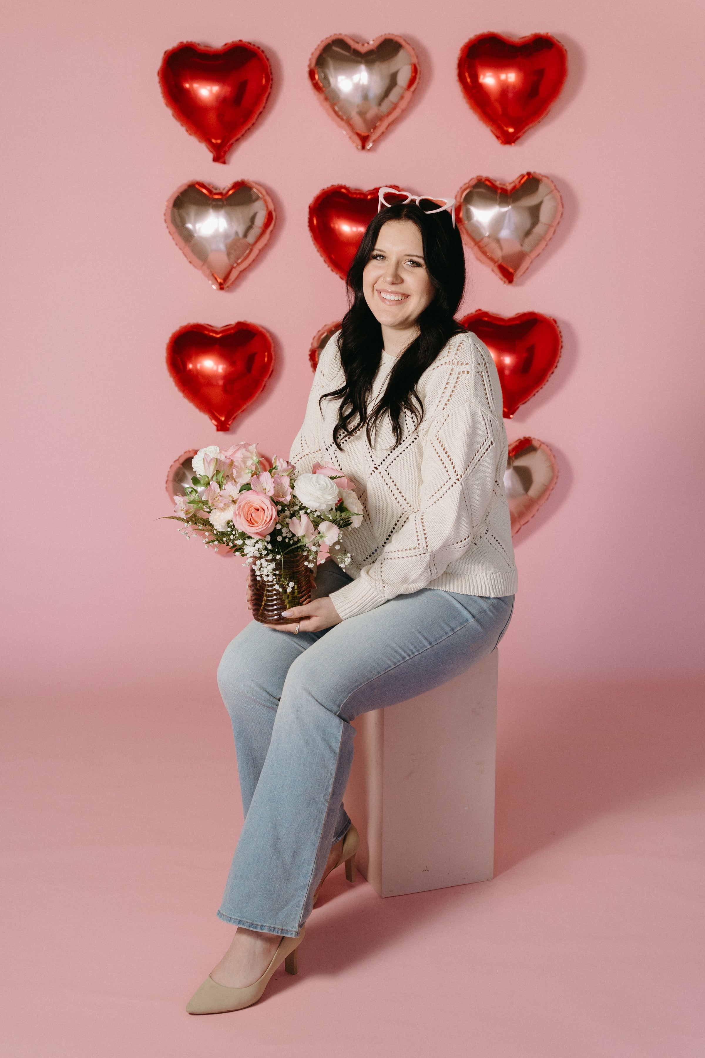 Flowers included: Roses, Ranunculus, Sweet Peas, Carnations, Alstromeria, Baby's Breath, Gunnii Eucalyptus, & Leatherleaf.