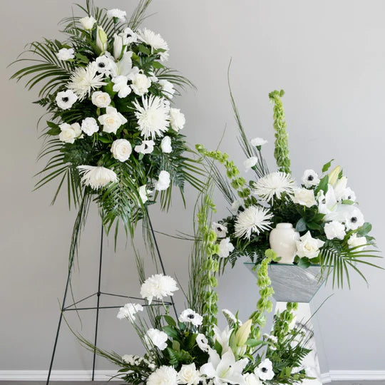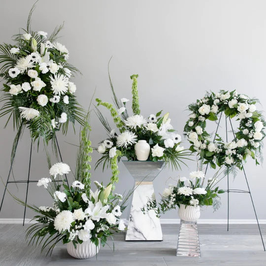 This collection features the arrangements in the Peace collection, as well as a service arrangement which is displayed in a beautiful urn or basket to add depth to your funeral suite. This arrangement is a lovely keepsake for the family to take home after the service.